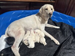This litter comes from one of our whitest dames, and she has truly produced a polar-bear quality litter